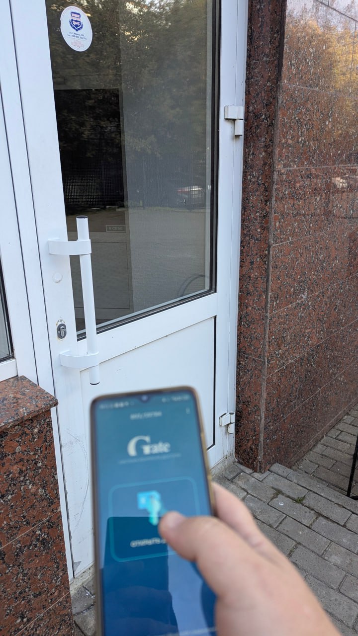 Подойдя ко входным дверям, откройте мобильное приложение «GATE».